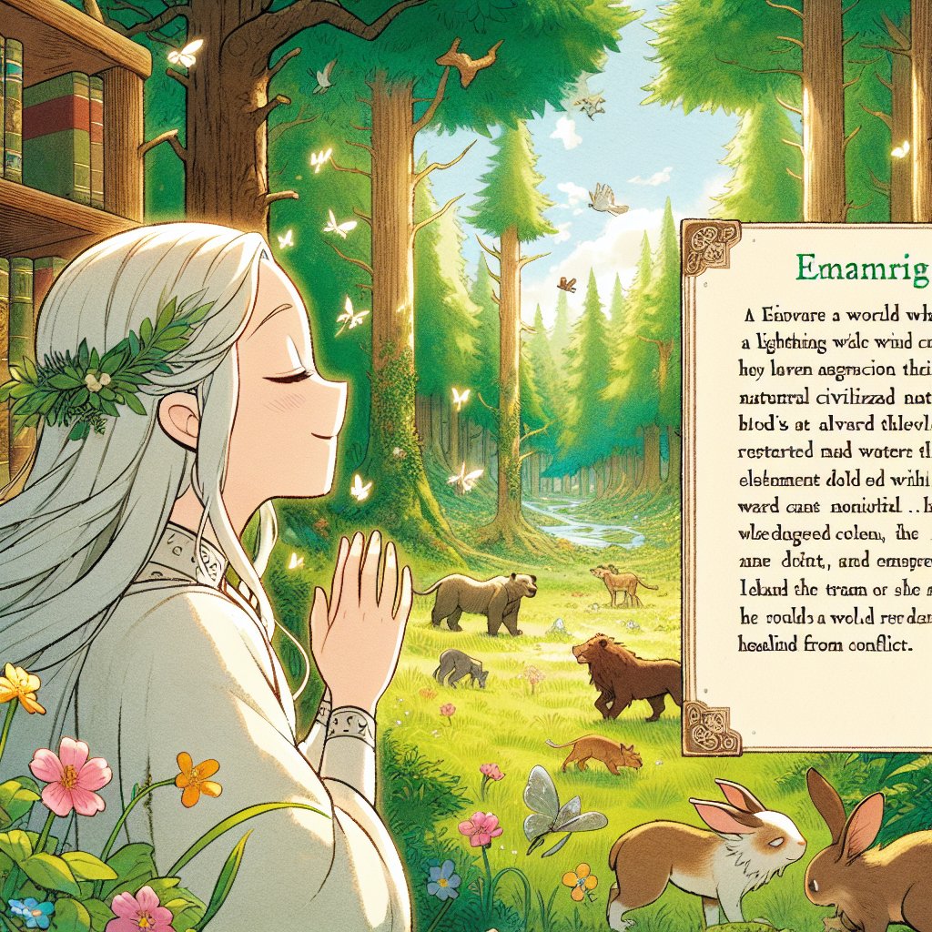 今日も、彼女は森の清らかな空気を吸い込みながら、周囲の草や木々に微笑みかけていた。自然への愛情は人一倍深く、動物たちと語り合い、傷ついた仲間を優しく癒してきた。そんな彼女の夢は、争いのない平和な世界だった。
